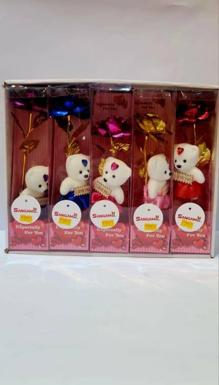 Artificial golden roses with teddy bear ₹399.00