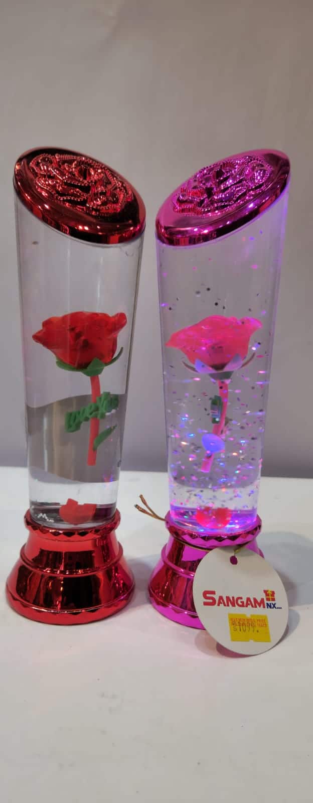 These are color-changing LED rose tornado lamps.