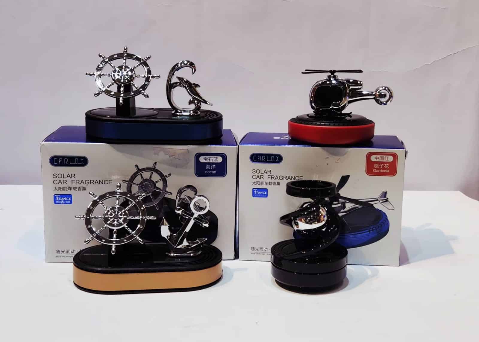 These are Carlox solar-powered car air fresheners, which use sunlight to automatically rotate and diffuse fragrance.