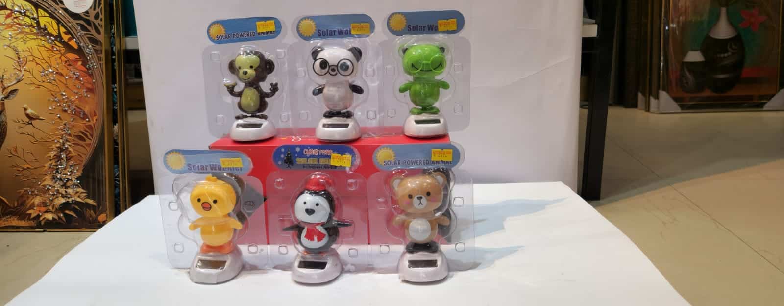 These are solar-powered dancing animal figures, a type of bobblehead toy.