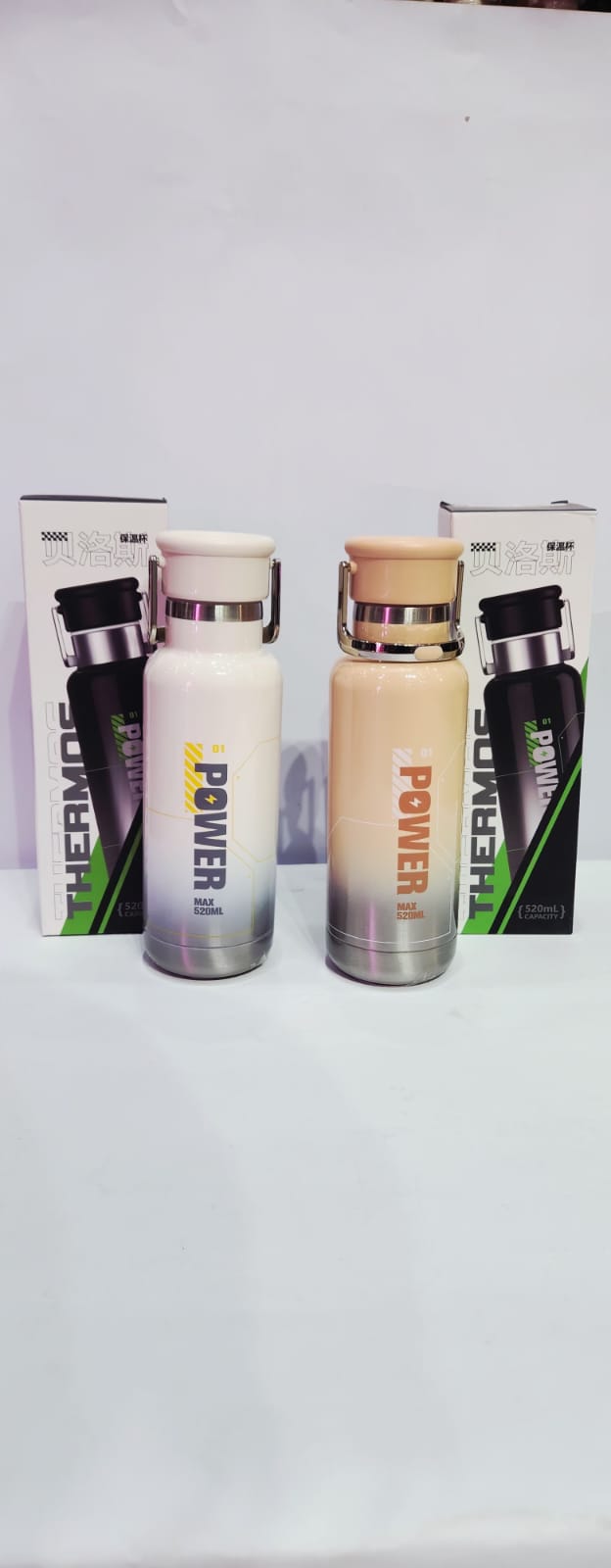 These are “Thermos Power” brand vacuum-insulated stainless steel water bottles.